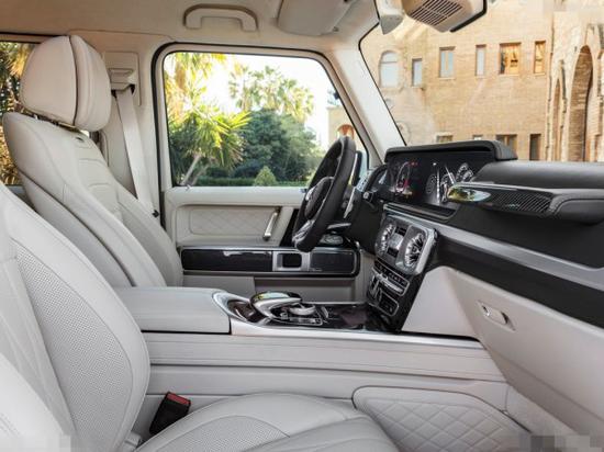 全新G63内饰方面,新G63保留了新G500的整体设计,除配色差异外,新车还换装了全新造型的平底式AMG运动方向盘,其两侧配以打孔皮质包裹,下部镀铬装饰的造型也与新G500明显不同,看上去十分战斗。此外,全液晶仪表盘+中控大屏的双12.3英寸屏幕设计在新车上也没有缺席,营造出了浓郁的科技感
