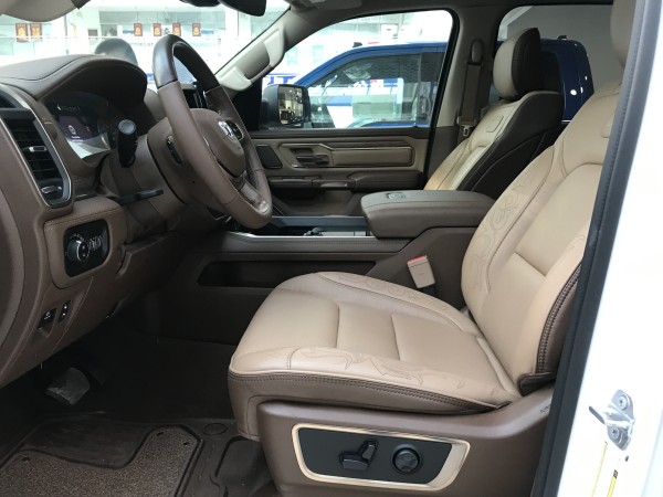 19款道奇公羊大角牛做工则完全摆脱了美式的粗糙感,边缘、接缝都处理的很精细。真皮座椅各自独立,配有加热、按摩等舒适功能,每个座椅独立配一个操控手柄,各项功能由乘坐者自己控制。道奇公羊皮卡车型全部座椅均采用真皮包裹,前排还配备了十分实用的运动座椅。