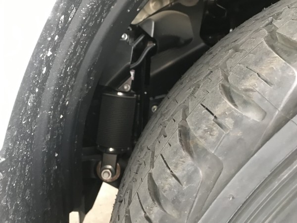 电子控制式动力调节悬架系统。兼备了两种相互对立的性能特征:越野行驶时,放任悬架伸展,充足的车轮行程保证了轮胎的接地性,提升了稳定性和通过性。公路行驶时,抑制悬架伸展,稳定杆扭转以抑制转向倾斜,提升了操控性和舒适性。