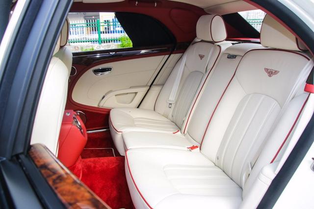 新到宾利慕尚 冰川白/亚麻白配红色 天窗,21轮,宾利徽章刺绣头枕,优选包(含内饰情绪灯,小飞人,宝石机油燃油盖,倒车摄像头,通风按摩座椅,泊车钥匙,明亮不锈钢门柱装饰),明亮不锈钢矩阵式进门气格栅,前舱大型玻璃天窗,车门内侧上衬板和仪表板边带有宾利飞翼徽标及镀络饰条,伯尔核桃木实木饰板,双色4辐真皮方向盘,前排座椅带双扶手,后排舒适头枕,带饰面的换挡手柄,后排小桌板,无钥匙进入,CCS定速巡航,座椅加热,遥控车门开启装置,后排娱乐系统,侧边角落摄像头,6碟DVD播放器,座椅椅套真皮滚边,备用胎等