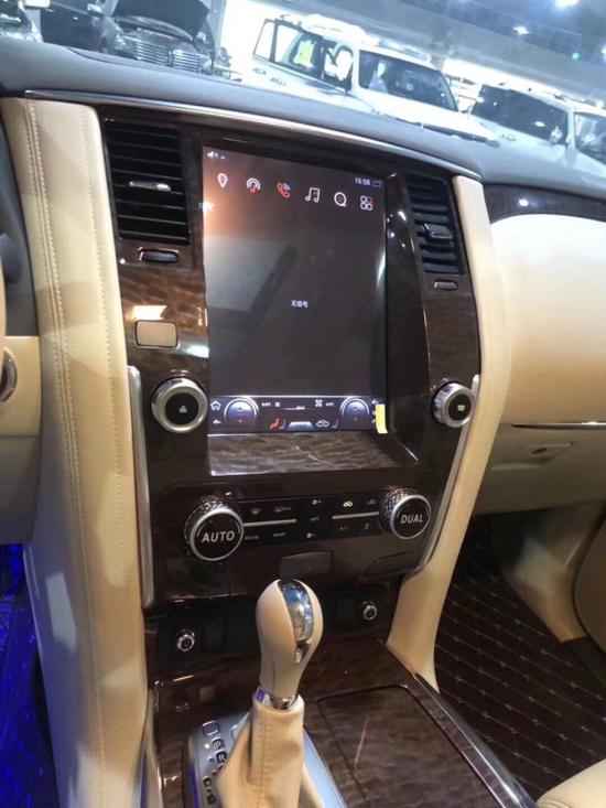 日产尼桑途乐Y62内饰兼具了舒适性和功能性。仍然为三排座车型,内饰材质也更加的考究,铝以及木纹样条作为点缀,以浅色调为主,营造出了轻松惬意的驾驶环境。日产尼桑途乐Y62全部完全遵循了 游艇的设计风格,宽敞、舒适、豪华。日产尼桑途乐Y62中控部分的设计比较具有豪华感,标准日系豪华车的风格