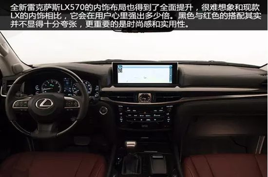 18款雷克萨斯LX570变速箱区域集成了车辆越野控制按钮、电源及USB插口,以及水杯架,后面的扶手箱很庞大,有制冷功能,长途旅游很是方便。全景影像系统的配备,也进一步增强了这款全尺寸SUV的易驾程度。此外,新款雷克萨斯LX570装配了Remote Touch控制机构、智能安全系统LSS+(包含自适应巡航、预碰撞安全、车道偏离预警等)、后排双液晶显示屏、后排多媒体控制、车内氛围灯、多种驾驶模式选择、HUD平视显示系统等。18款雷克萨斯LX570作为一款越野能力强悍的豪华suv,电子配置可真是不少,新车采用了前独立双叉式悬架+横向稳定杆、后四连杆机构式悬架的悬架形式,各种路面冲击通通由悬挂系统来消化。在这些越野利器以及中央差速锁的帮助下,身形庞大的LX570在面对一些烂路时也显得非常从容。