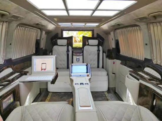 18款奔驰V250进口商务整车5370*1928*2140mm,轴距3430mm,6座,包括2张隐藏式座椅,有隔断,配备高清液晶卫星电视,后车舱功能也一应俱全,后排座椅旁配有折叠式隐藏桌板,一键电动展开,伸展隐藏座椅,扶手处是一个小型的酒箱,上面展开是一张带有四个杯托的小桌板,一个小型的商务会议室就在几秒间电动生成了,喝酒聊天,聚会谈判,都十分轻松舒适