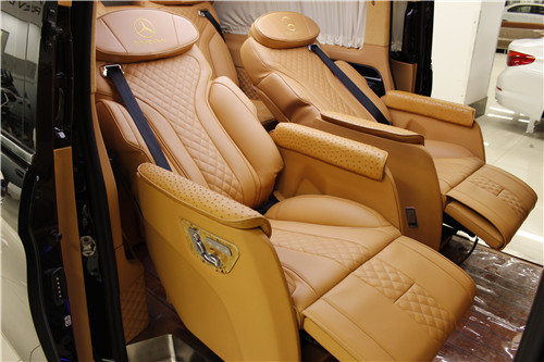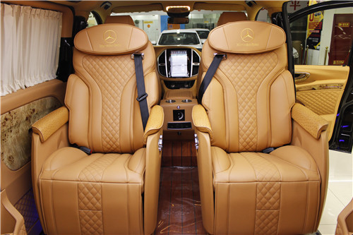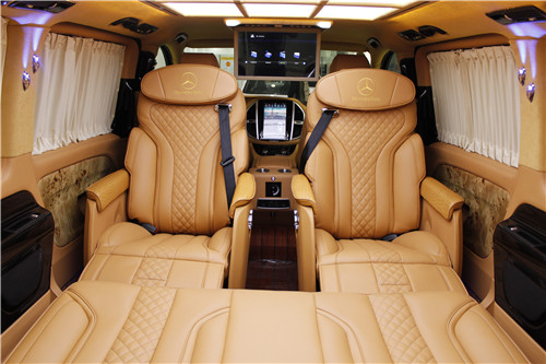 奔驰麦特斯商务车车厢为三排座椅设计,第二排座椅更奢华,尺寸更大的同时也拥有更多功能。左侧座椅旁边有更多可操控的按钮和小桌板,一切尽在掌握。全新奔驰麦特斯提供了豪华真皮电动单人座椅,配备双侧扶手、豪华头枕、腿托以及脚托,座椅具有加热、通风、按摩等舒适功能,为乘坐者提供最舒适的乘坐感受。全新Metris可提供1,030升的行李舱空间。