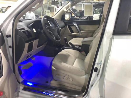 19款丰田霸道2700内饰改装后升级高配装饰:一键启动,多功能方向盘,打孔真皮座椅带通风加热,氛围灯和迎宾灯。