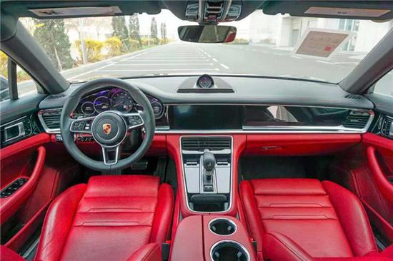 保时捷帕拉梅拉4S 内饰方面有着全新的改变,例如新造型方向盘、质感一流的PDK排档杆与5环式驾驶仪表等造型设计。另外,新一代PCM保时捷通讯管理系统在中控台上整合了尺寸更大的液晶屏幕。传统位于中控台的空调系统与警示灯等按钮,都转移至排档座区块。众多控制按钮以深色底板辅以细条镀铬的对称排列设计成为保时捷中控台造型的一大突破。。
