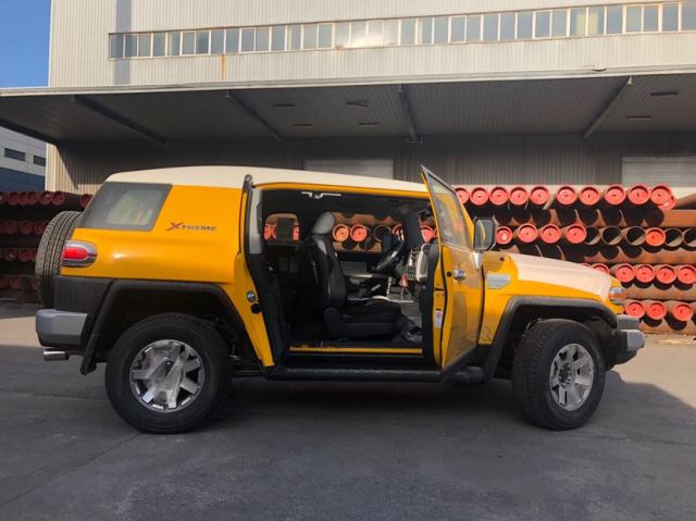 19款丰田酷路泽FJ在许多方面继承了FJ40的经典,比如圆形的前大灯,经典的带丰田标志的车前格栅,笔直的挡风玻璃,别具一格的白色圆浑方正的车顶,车身后部的四分之一车窗以及后部宽大的空间。在丰田FJ酷路泽4.0尾部的保险杠上设置了深色的踏板,这个踏板承重能力很强,完全可以站上去。
