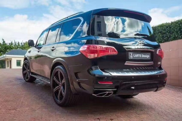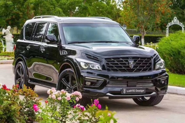 QX80的前脸设计非常简洁,目力所及之处,线条简洁、气场强大,气势上虽达不到咄咄逼人,但是唬人的能力依旧不容小觑。与老款车型相比,梯形进气格栅所带来的横向延伸感要比现款车型更加强烈,前大灯组的位置也有了明显的提升,而且发动机盖整体向前延长,这也直接带来了更为犀利的视觉感。气势上的强大绝不只前脸这么简单,对于QX80来说,其庞大的尺寸就是展现气场最佳的代表。现款车型长宽高分为别5303、2030和1927mm,轴距为3075mm,新款车型有过之而无不及。