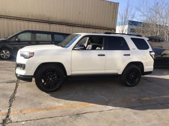 超霸 19款 4.0 Nightshade夜影配置:5速,7座,全时四驱,中央差速器,天窗,皮革座椅,8气囊,6.1英寸触摸屏,15个喇叭,JBL音响带低音炮,多功能方向盘,20轮,无钥匙进入,无钥匙启动,踏板,双区自动空调,AVN高级导航,自动折叠后视镜,前座加热和通风,驾驶员座椅记忆,前后雷达,主驾驶8项电动调节,副驾驶4项电动调节,电动垂直滑动后窗,12V电源5个,巡航控制,车库门开闭器。镀铬门把手,镀铬格栅,X-REAS运动悬架,全尺寸备胎,自动头灯,(七座 电动踏板 黑色熏黑轮毂 黑色门把手 黑色后视镜 黑色前保险杠 特殊内饰条 )
