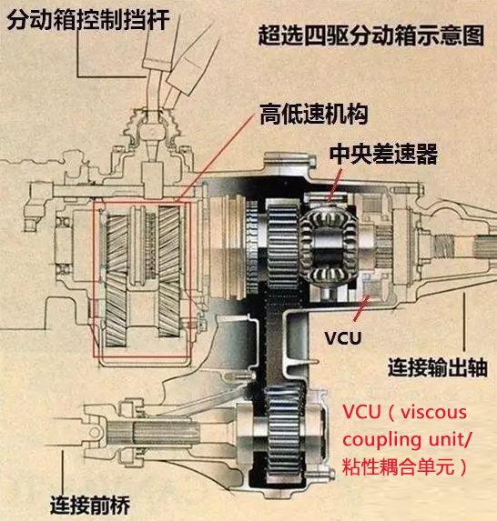 帕杰罗的VCU单元三菱帕杰罗超选四驱是如何实现高速四驱的呢?在第一代超选四驱中,采用了液力耦合器结构,第二代更改为多片式离合器结构,类似分时四驱结构多了一套粘性耦合单元,这其实多用于城市SUV的适时四驱系统。