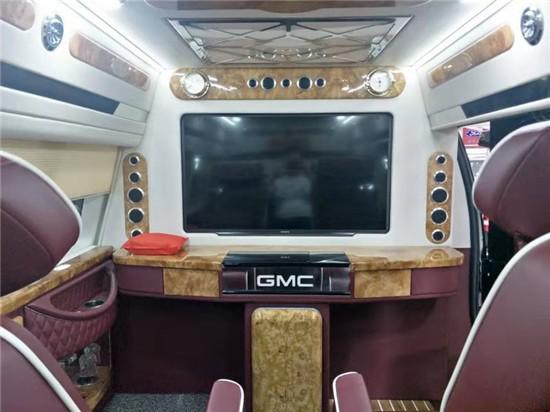 经典大气的双开门,GMC房车的双开的车门能完全打开,有一种美式摩登时髦的感觉。车内贵宾舱的精致程度让人惊艳,兼具豪华与舒适的同时,拥有许多实用性的配置。GMC保姆车前后舱隔断,隔断层设计是32寸可升降液晶电视,左右搭配的是5.1声道立体声,美国音响品牌燕飞利仕,开阔震撼的立体音响彻贵宾舱。电视的吧台设计大容量冷藏冰箱,吧台左侧则设计了奢华酒柜,让您旅途享受音乐的时候还能喝上一杯,怡然惬意。