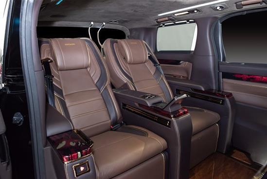 19款丰田埃尔法郁见版搭配乘客舱一键式电动雾化玻璃隔断,紫檀木功能小吧台,飞机头等舱首长座椅,可以180度展开并且带有三项座椅记忆功能,还可以进行通风、加热、气动按摩等功能,桌板也变为伸缩航空滤纸小桌板,并带有二级折叠功能。整车搭配顶级之檀木,加上极光雕刻樱花元素地板,加上奢华酒柜,后方还有超大储物后备箱,多功能储物格,氛围灯加上360度旋转阅读灯,让整车奢华感倍增。无论是出行还是接待,专属的私人空间都可以尽显奢华,也是成功人士身份的代表。
