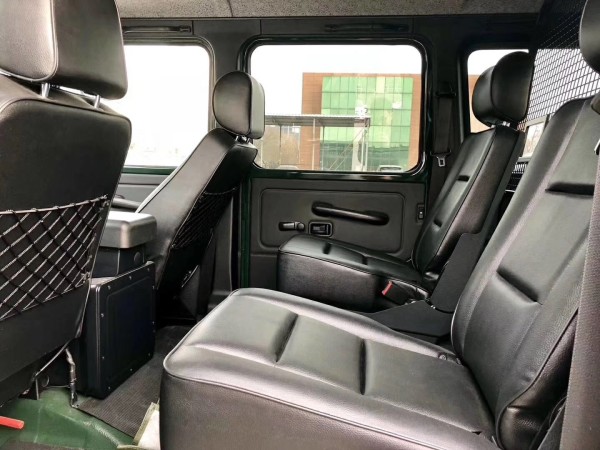 在内饰方面,平行进口2017款奔驰G300军用版依然将实用的理念延续到底,整个内饰设计朴实,各个功能区域清晰明了,很好的传承了G系列的经典设计。改装奔驰G300一改民用豪华、高贵的设计,而是采用将实用性进行到底的设计理念。在仪表台区域,奔驰G300采用传统机械式指针设计,可以显示速度、转速、水温与剩余油量。值得注意的是,作为一款柴油车,奔驰G300转速表最大值达到了7000rpm。方向盘采用真皮设计,没有多余的按键。可喜的是,奔驰G300配备了方向盘安全气囊,为驾驶员提供安全。
