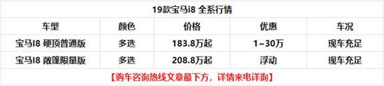 动力方面,新车将会搭载一套插电式混合动力系统,其由一台1.5T三缸汽油发动机和电动机组成,最大功率为374马力,纯电动模式下最大续航里程为55km,0-100km/h加速时间为4.4秒,最高时速达到250km/h。电池方面,新款i8 Roadster也有所升级,原有7.1kWh的电池组容量将升级到14.5kWh,纯电续航里程也从原来的37km进一步增加到53km。
