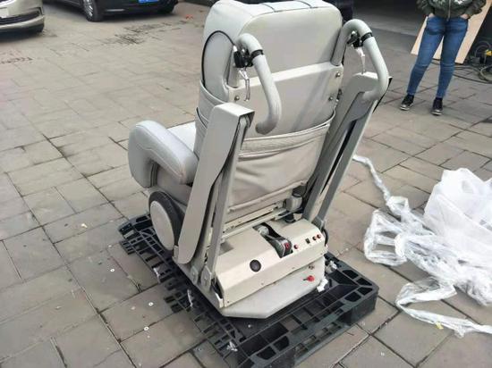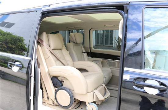 此座椅带电动升降机构,并且可单独从机构上分离,表皮为真皮,骨架为铁制,带滑轮,于私家车上使用。专为特殊人群们提供的以商务奔驰为载体的福祉车,可以让腿脚不便等特殊人群使用的自由上下车座椅。有效的帮助了残障、腿脚不便等人群解决了上下车不便的问题。通过电动升降轮椅取代了靠掺、扶、抱、背等自行方式来上下车的特殊人群。该款福祉车的轮椅和升降机构是可以一键分离的,目前在国内是首例,技术也是最先进、最成熟的。