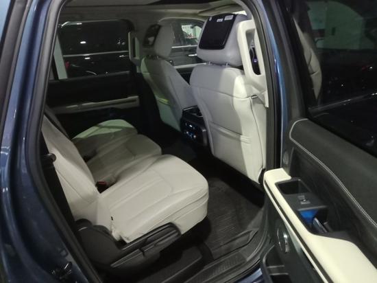 内饰方面:全新征服者的内饰风格几乎看不到现款车型的造型,所有反而布局都经过从新设计,对宽大的仪表台进行了整体造型规划,中控台采用了最新款 F150 的设计,显得格外霸气,而换挡台上却进行的自己独有的设计,两个旋钮分别是电子档位,以及两驱四驱系统的驾驶模式选择。饰板采用了实木面板,在配上菱格造型的真皮座椅,让全新征服者的豪华感大增。