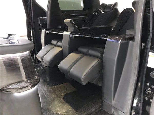 蒙娜丽莎限量版采用5门4座MPV整车布局,后舱后排独立两座与前舱全隔断商务洽谈私密空间,配备前后舱即时对讲手提电话,座椅扶手多功能键区及隐藏式行政大桌板,整舱氛围灯、阅读灯及前方电视等娱乐系统。双侧电动侧滑门及电动后尾门,360度环车影像,随动转向大灯。