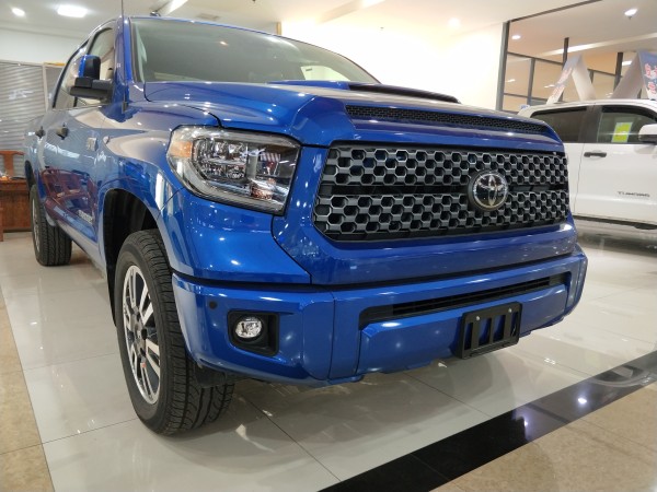 18款丰田坦途皮卡的车头前脸造型上更加硬朗,粗壮的横幅格栅展现出极其坚实的力量感,宽大硬朗的车身,粗犷有力,凸显美国车的风范,前脸明显外张的挡泥板以及前突的坚固格栅尽现强悍风格。