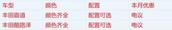 近日,从天津运泽汽车贸易有限公司了解到丰田大量进口新车到港,18、19款丰田霸道,酷路泽等。丰田全系现车手续齐全,本月丰田大量现车优惠促销。本公司车辆全国可以正常落户上牌,全国可办理分期购车业务,北京、天津等地区可提供上牌服务。感兴趣的朋友不妨进一步关注: