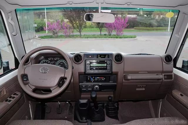 内饰方面,LC 76的内饰十分的简洁,因为它不需要太过于花哨,有着较高的可靠性和越野中便于打理才是最重要的,也让很多车主在越野时,不会有太多的顾忌,更加专注的去越野。仪表盘可以显示机油、燃油、水温、电压以及发动机转速和车速的信息,中控台上方有一块小的液晶显示屏,可以显示海拔高度和车内外温度等信息,这对于越野来说也是至关重要的。副驾驶的扶手十分粗壮,它可以在越野时为副驾提供更多的安全感。