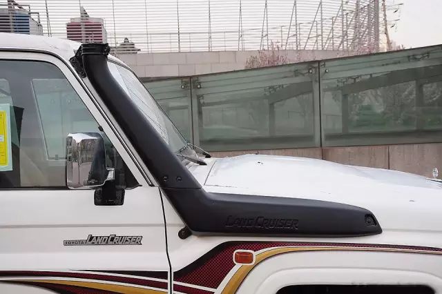 车身侧面的造型十分简洁,高高耸立的涉水喉,较高的车身离地间隙,都保证了它极高的越野通过性。车身尺寸方面,LC 76的长宽高分别为4810*1870*1920mm,轴距为2730mm。
