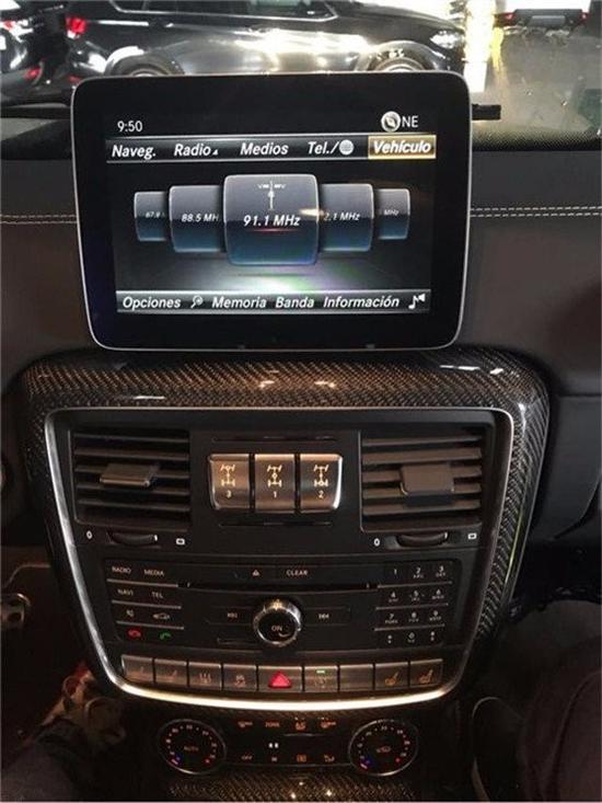 内饰方面:18款奔驰G500 4x4二次方透过巧手改进,打造出专属BRABUS的机能风姿。打开车门,电动遥控踏板会主动伸出,不然以G500 4x4二次方达2300毫米的车高,上车便是一件夫役活。该辆G500 4x4二次方连结了玄色真皮重新包覆中控台、座椅及门板,甚且中控台及排档座皆接纳了质感非凡的碳纤维材质饰