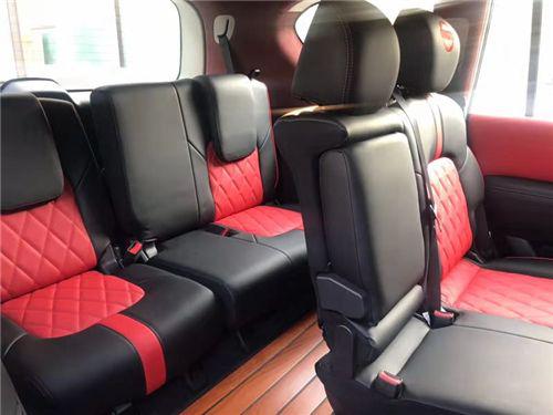 18款日产途乐Y62中东4.0内饰兼具了舒适性和功能性。仍然为三排座车型,内饰材质也更加的考究,使用了皮革,铝以及木纹样条作为点缀,以浅色调为主,营造出了轻松惬意的驾驶环境。全部完全遵循了游艇的设计风格,宽敞、舒适、豪华。中控部分的设计比较具有豪华感,标准日系豪华车的风格,BOSE音响 是很多中高端车所选用的,音响效果不会让你失望。