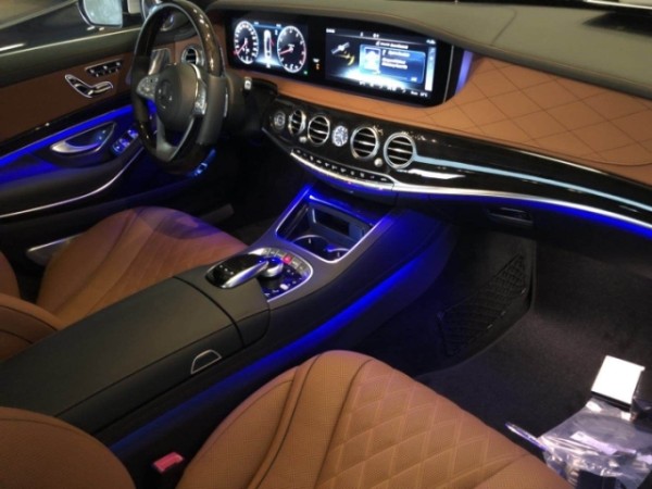 内饰方面:新一代梅赛德斯-迈巴赫S级轿车的车主通常会坐在后排,与之对应的是后排左右两侧标配的行政座椅。借助特殊的调节系统,后排座椅提供了超乎寻常的独特舒适感。值得一提的是,在腿部空间和座椅位置不变的情况下,靠背可单独调节。同样全系标配的是后排腿部空间扩展组件,通过对系统的调节,右侧后排座椅在腿部空间方面比常规座椅的最大位置还要多出77毫米。后排座椅功能均通过车门上经典的梅赛德斯-奔驰方式的控制板来操作。当然,后排中央扶手中带有两个杯座、多处储物空间及木饰。