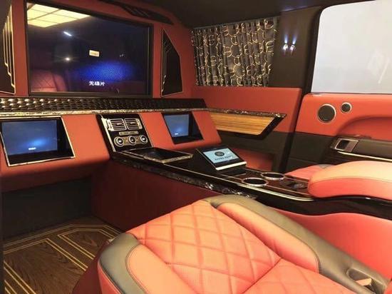 加长路虎皇家一号礼宾车22寸多幅轮毂 前排座椅14向调节带记忆,前排座椅通风加热,后排电动座椅,后排通风加热按摩(带腿托),皮顶,前雾灯,桃木方向盘,方向盘加热,无钥匙进入,一键启动,脚感尾门,360度环车影像,二代地形,空气悬挂,电吸门。 可升降蓝光DVD播放系统,三屏显示,英国之宝825W顶级环绕音响系统,车内氛围灯,后排LED吸顶照明灯,后排独立空调控制系统,电动脚踏板,爱马仕定制窗帘,后排隐藏式密码保险箱,无线充电。