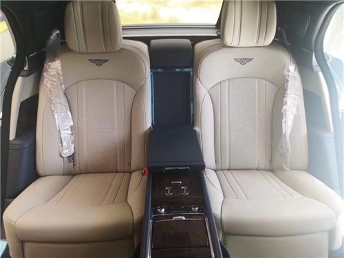 车辆选装:镀铬内饰门炳,量身定制门边踏板,钻石纹座椅,座椅刺绣,孔纹皮革车顶,镀铬按钮,羊毛地毯;两张航空座椅,带两侧舒适腿部支撑,两个可调式翼型头枕及特级柔软Alcantara头枕,前座及后座座椅通风;亮银色不锈钢B柱,宾利立标,金属油箱盖,遥控车库门开关,雨伞2把,后备泊车钥匙,木饰抽屉及仪表板,后排2个10.4寸电动伸缩平板电脑,Naim顶级音响,前座椅背木饰小餐桌;Hallmark限量版黄金套装,特别定制车漆,金色单条细腰线,胡桃木木饰,,座椅真皮包边,加长型中控台带两个折叠餐桌。
