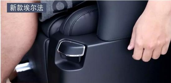 第二排,是埃尔法的精华所在,但新款的第二排变动非常小,只增加了一项功能,就是后排座椅滑动时,增加了电动微调功能,就是你扣一下座椅移动的把手,它就会进行一个小幅度的滑动,再扣一下,它就再滑动一下。这样微调起来就很方便,不会一不小心滑大了。当然,如果你要大幅度滑动的话,只要一直扣着把手就行,仍然很便捷。