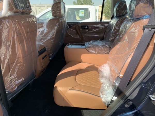英菲尼迪QX80 19款 5.6 顶配 蓝/棕 中东 配置:5.6排量v8 398马力 7速 全时四驱 拖车模式 雪地模式 多功能方向盘 一键启动 无钥匙进入 真皮内饰 真皮座椅 主驾座椅记忆 主副8项电动座椅 腰部支撑 触摸大屏 自动空调 钟表 座椅加热 天窗 自动防炫目后视镜 桃木内饰 电动尾门 冰箱 后排自动空调 后娱 第三排座椅电动收放 隐藏脱钩 前后电眼8个 led大灯 led日行灯 自动大灯 22轮 环影 胎压 8气囊 定速巡航 行李架 方向盘电动调节 bose音响 座椅排列2+2+3