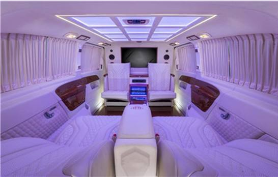 进口奔驰V250商务车,第三排座椅采用两个迈巴赫62S首长级座椅,带加热,按摩,通风,一键式电动调节记忆等功能。进口奔驰V级V250商务车改装咖钻版座椅人体工程学设计,带有一键式展开及记忆功能,并配备加热、通风、气动按摩、一键式伸缩腿托功能,带来头等舱级舒适体验巧夺空间,私家客厅级后舱体验,隐藏式空间优化独立座椅,进口奔驰V级V250商务车二排座椅可在吧台与独立座椅间一键切换,充分释放后舱空间,带来客厅级舒适享受