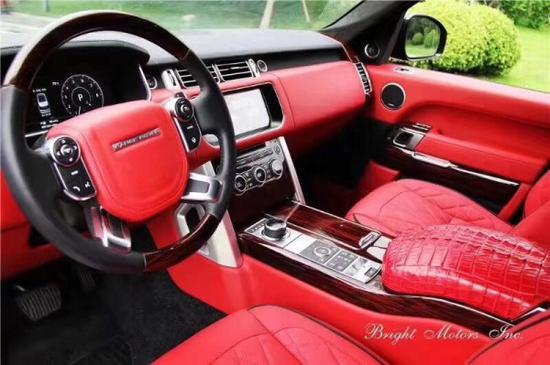 路虎揽胜行政创世加长均采用精心设计及精湛工艺,并选用最为顶级的皮革及材质,仪表板、手套箱盖、中央通风口四周、车门内饰板和方向盘后均采用全真皮包裹,甚至驾驶者的膝部气囊的外层也同样采用了真皮装饰。