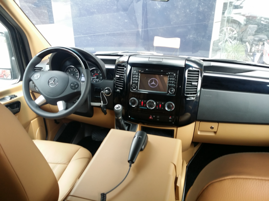驾驶舱前方是超大面积的挡风玻璃,使驾驶者拥有极好的视野,安全系数大大增加,前挡风玻璃中集成纵向摆放的加热丝,除霜除雾功用效果非常好。驾驶舱内部秉承奔驰一贯的传统,大气、简洁,中控功用键摆放科学,操作起来非常便利,倒车印象、导航、定速巡航等功用一应俱全。值得一提的是中心配备的超大容量车载冰箱,炎炎夏日实在是太实用了。