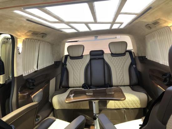 外观方面:采用V-Class最新款前中网设计,同时采用新款V-Class蓝光LED大灯,定制版前后包围,双侧电动门,后掀尾门,17寸铝合金轮毂,车顶行李架,电动折叠后视镜,日间行车灯。