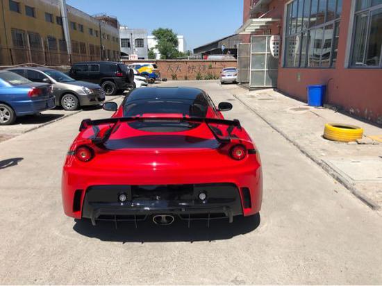 从后侧面看过去是不是就很符合“腰细屁股翘”特点,整体S形的曲线无时无刻都在吸引着看官们的眼光,同时又突显“脚大”,“脚大”有一个好处就是稳,虽说前轮19寸后轮20寸在现在不算大,但这视觉效果给人一种安全感,更加的信赖它。车尾也是路特斯的标志,圆圆的尾灯透露着小俏皮,车牌位置旁边的小灯和排气口像一个小的倒三角,还能与尾灯连成一个大的倒三角造型,设计师花了不少功夫吧。车尾顶部就是这个“带你飞的大尾翼”了,略显夸张的大,表面了跑车的身份。