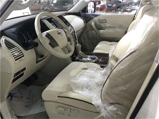 18款日产途乐Y62中东4.0内饰兼具了舒适性和功能性。仍然为三排座车型,内饰材质也更加的考究,使用了皮革,铝以及木纹样条作为点缀,以浅色调为主,营造出了轻松惬意的驾驶环境。全部完全遵循了游艇的设计风格,宽敞、舒适、豪华。中控部分的设计比较具有豪华感,标准日系豪华车的风格,BOSE音响 是很多中高端车所选用的,音响效果不会让你失望。