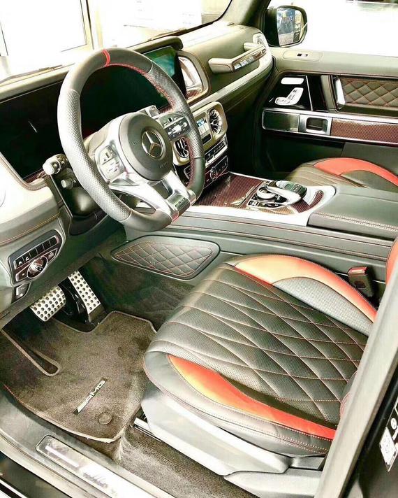 全新奔驰AMG G63内部采用了全液晶仪表与中控屏组成的双12.3英寸超大屏,让车内的科技感和豪华瞬间提升。方向盘也由原来传统的四幅式升级为平底式运动方向盘。