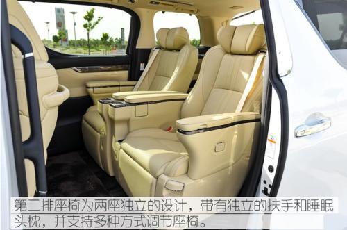 19款丰田埃尔法拥有比轿车更舒适的航空舱和较大豪华的内部空间,这才是埃尔法MPV所追求的。在埃尔法热销的港澳地区,明星与老板们几乎是人手备一辆埃尔法。对于埃尔法来说,亮点最大的其实是它的乘坐空间,依旧采用2+2+3的7座布局,尤其是第二排的独立座椅简直就是精髓。虽然说第一排座椅是司机专属,不过材质以及配置同样不差,打孔座椅乘坐同样舒适,带记忆功能电动调节、座椅加热等功能。
