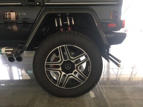 18款奔驰G550 4x4²墨西哥版四轮独立悬挂越野车的四轮轮眉宽度有了明显的增加,黑色的碳纤维轮眉赋予了整车更为强悍的通过能力和越野能力的野性。与普通版G500相比采用越野地形底盘四轮独立悬挂,具有最高通过性的纯种地形越野车