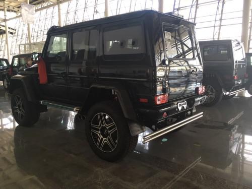 18款奔驰G550 4x4²墨西哥版G级车引以为傲的前中后三把差速锁系统必不可少,并采用了与普通版G级车不同的门式车桥,越野性能强悍的轮胎尺寸很大,达到了325/55R22。离地间隙达到了450mm,涉水深度为一米,接近角和离去角分别为52°和54°。