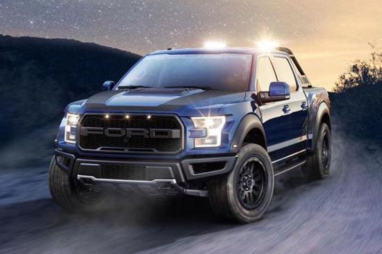 2018款福特猛禽F150中规版外观形如其名,高大威猛,车头大FORD字样的全黑水箱网状格栅在提升整体感的同时更延展了整个车头的视觉空间,让人第一眼望上去便心生敬畏,狂放的性格展露无遗。
