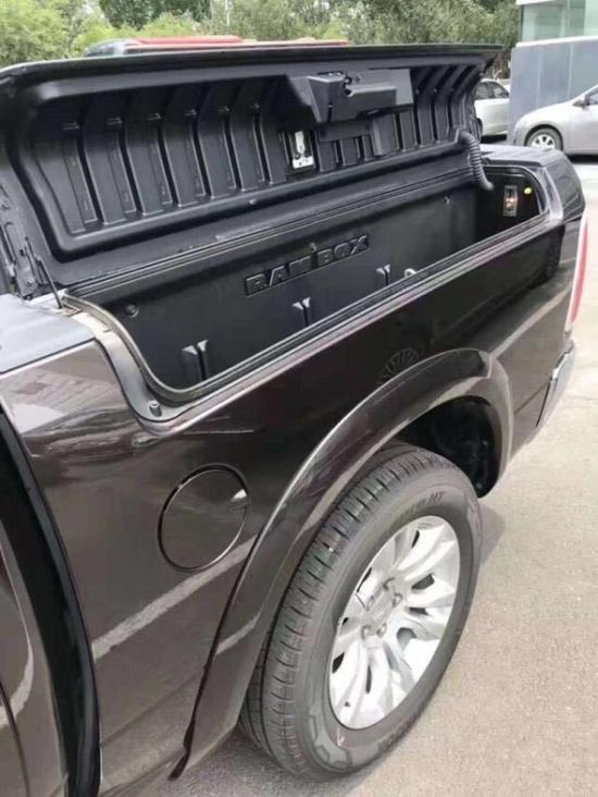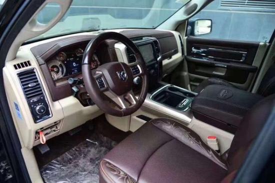 道奇公羊皮卡中控台的设计简洁硬派,符合公羊的气质。道清公羊拥有自调节空气悬挂,当一辆足以秒杀悍马的庞然大物从你身边呼啸而过时,你忍不禁会先倒吸口凉气。道奇公羊运动版皮卡Ram1500提供5.7LV8两款汽油发动机供消费者选择。其中5.7L发动机最大马力为395Ps,最大扭矩为552 N·m。传动系统方面,新车将全系标配8速自动变速箱,这将对该车的燃油经济性和平顺性有较大帮助。长角号的三维尺寸只有猛禽、坦途才能与之相提并论,接近5.8米的长度和超过2米的宽度足以秒杀陆巡,X6,揽胜and悍马H2都是轻轻松松的。