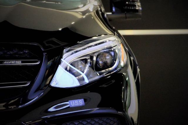 从前脸来看,它是一个比较正统的家族式设计,跟常见的奔驰GLE400甚至GLS都没有太大的差异,大体上一样。首先,前脸最引人注目的可能就是它的奔驰标了,这是一个实心的车标,说明它是带有ACC自适应巡航也就是我们常说的雷达测距功能。两侧,这款车采用的是LED大灯,并带有LED日间行车灯。另外,这款车底部采用的是一个运动包围。
