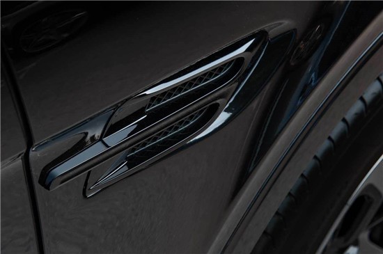 2019款宾利添越车身大量使用了轻量化的铝合金材料,从而有效的控制了整车重量,目的是为了提升这辆庞大SUV的操控性和燃油经济性。车身侧面抽象的“B”字形散热口造型看起来很有速度感,就像液体被风吹过,向后流动,辨识度极高!