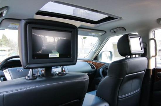 18款英菲尼迪QX80 中东版 5.6L全时四驱 自动开关双氙气大灯,带弯道辅助照明系统,远光灯辅助系统,LED前雾灯,镀络后保险杠保护,电动滑动天窗带一键开启,脱钩,车厢行李架,电尾门带关闭辅助,智能钥匙带一键启动,三区自动温控系统,真皮座椅10项座椅调节,副驾驶8项调节, 第三排座椅电动调节,13扬声器带BOSE 高级环绕音响,导航,第三代环影,运动目标检查,停车辅助,400米遥控启动,7英尺彩色播放屏。