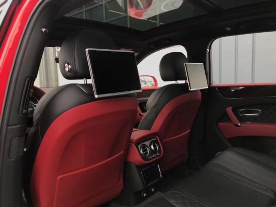 2019款宾利添越后排座席,有太多理由令您流连忘返,无论是畅行之际划过车窗外的美好景致,抑或在车内娱乐系统中探寻无尽妙趣。宾利添越前排座椅头枕后部安装的10.2寸娱乐平板电脑,连接座驾娱乐系统,令后排乘客于指间从容触及愉悦之源。宾利添越通过移动平板电脑端的便利触控,您可即时调用车内娱乐系统提供的任何精彩体验,您亦可佩戴蓝牙,以影音享受开启专属于自己的世界。