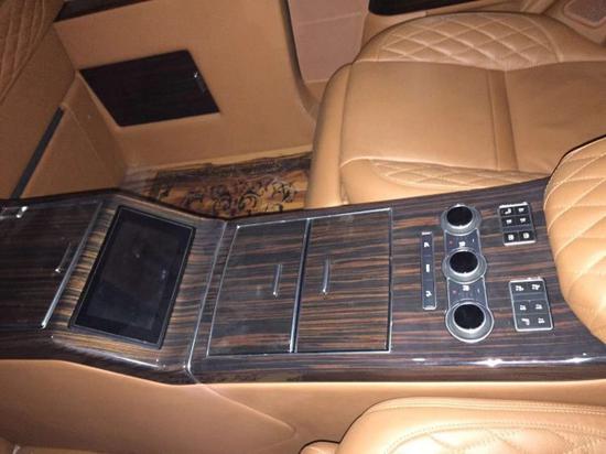 路虎皇家一号前方座椅加热带按摩功能,车载冰箱一应俱全,由于车比较长,所以配备了前后对讲功能。前后虽有隔断,但是液晶显示器是可以升降的,这样的设计不会让后排乘客感到很闷。