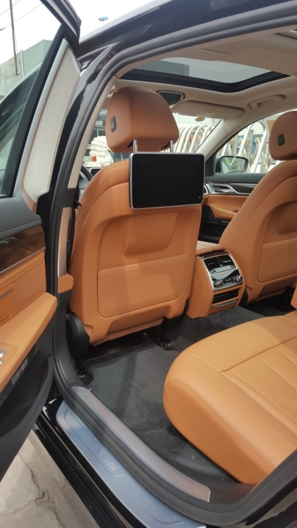 中东宝马740Li 3.0T 黑/棕金属漆,18轮,5座,汽油型,液全景晶仪表盘,智能卡,无钥匙进入,无钥匙启动,全景天窗,触摸大屏,中文菜单,倒影,前后排座椅加热,后排座椅舒适电动调节,后排娱乐系统(带智能后排触控系统),地盘升降,电吸门,电尾门,前后电眼,HIFI音响,四区自动空调,桃木内饰,LED大灯,车内氛围灯,后排电动遮阳帘,丝绒脚垫。